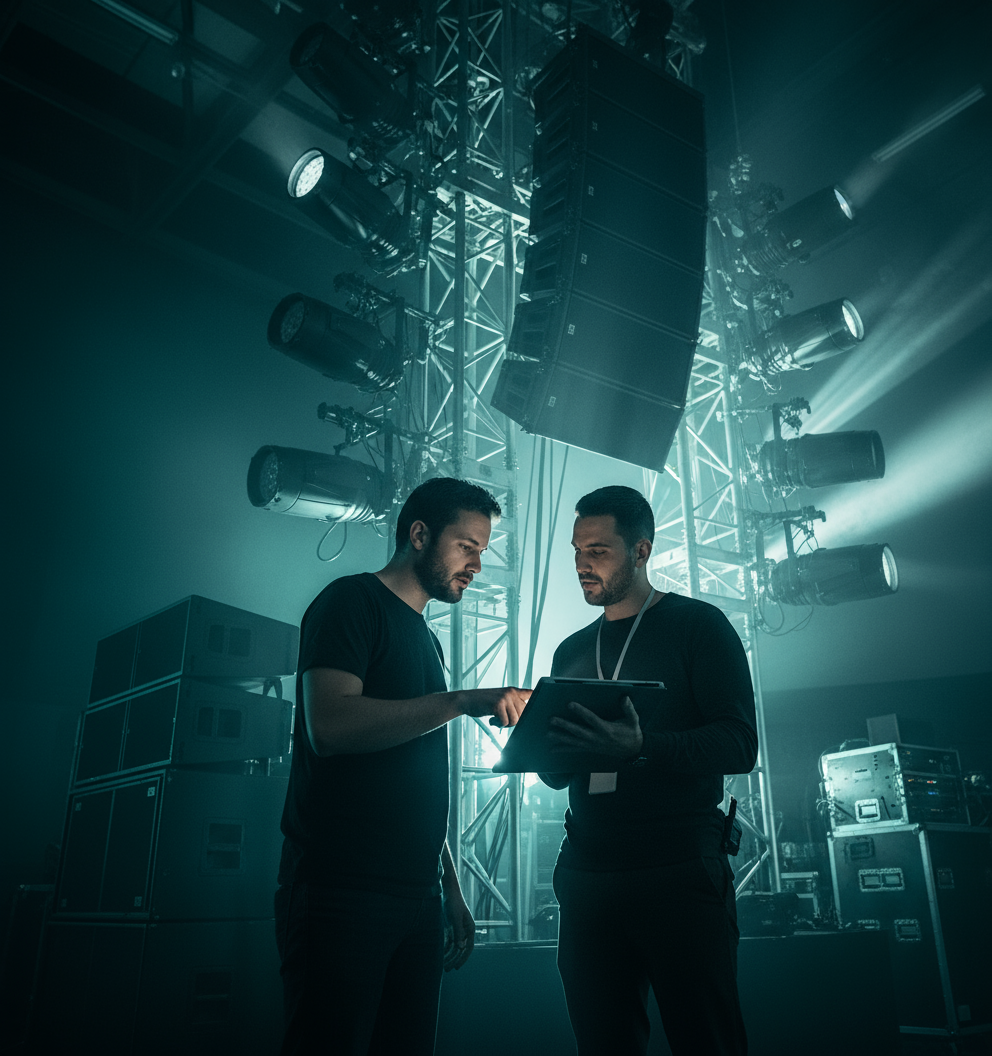 Wir bringen das Equipment rechtzeitig zum Veranstaltungsort, bauen alles auf und sorgen dafür, dass die Technik reibungslos funktioniert. Nach der Veranstaltung übernehmen wir auch den Abbau.